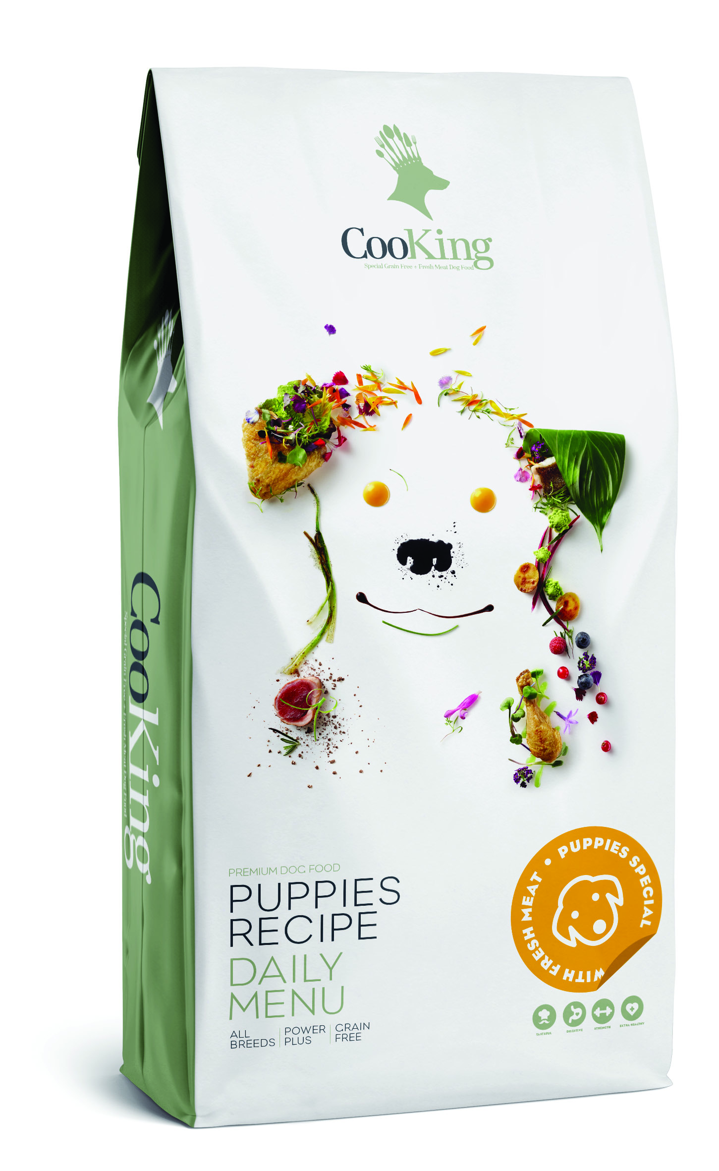Croquettes biologiquement adaptées cuisinées avec des viandes fraîches (poulet), sans céréales, constitue une alimentation complète pour les chiots en pleine croissance. Cuisinées dans une nouvelle cuisine High tech, ces croquettes contiennent un taux de protéines élevé, un faible taux de matières grasses et peu de glucides. Elles sont donc très appétentes et digestes pour nos compagnons. La recette des Cooking est élaborée à base de viande fraîche, légumes, plantes, chondroprotecteurs, et sans colorants ni conservateurs, afin de répondre au mieux aux besoins nutritionnels des chiots et chiens adultes.