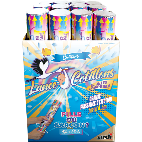 Conçu pour les Gender Reveal Party ou Baby Shower, vos invités n’ont aucun moyen de découvrir la couleur des confettis avant que vous ne les ayez tirés avec le canon. Des confettis d’un beau bleu clair feront alors comprendre à tout le monde que “c’est un garçon”. Parfait aussi pour le baptême du petit garçon quelques mois plus tard.