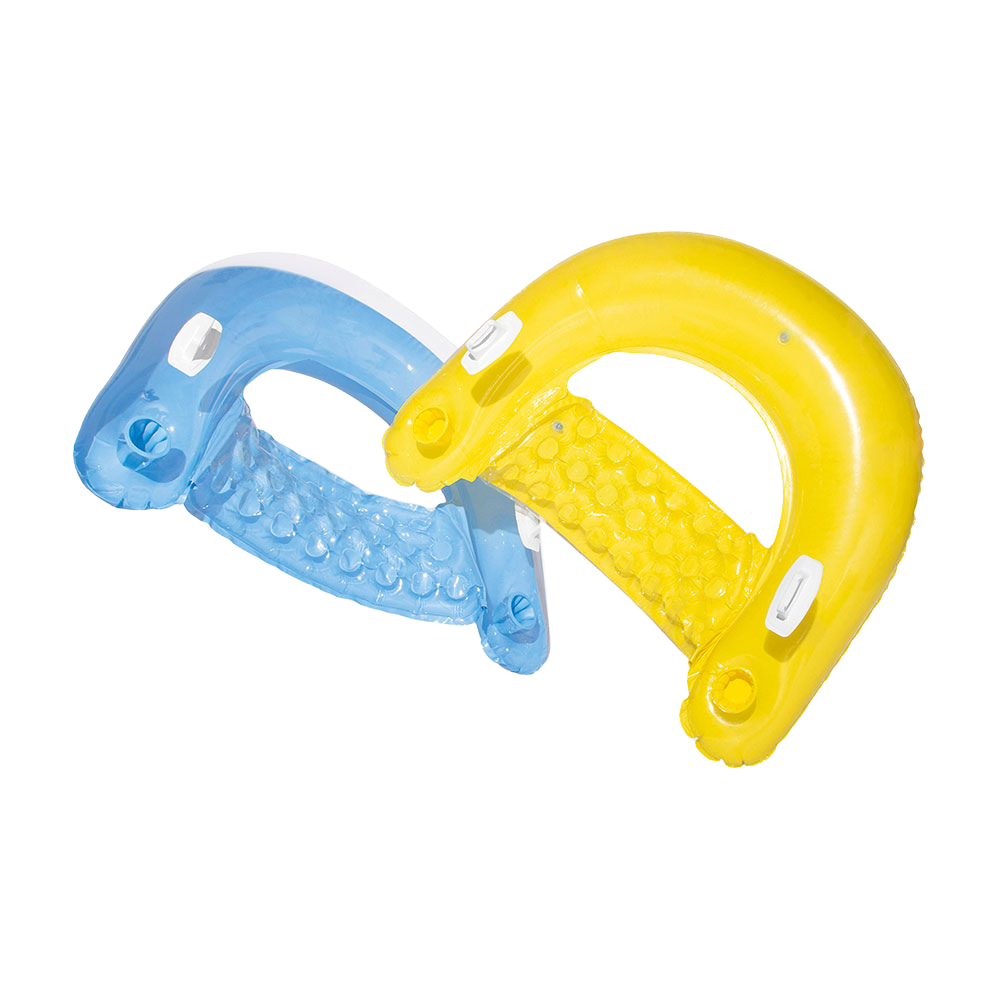 Prenez le temps de vous prélasser avec le fauteuil de piscine semi immergé Intex ! Ce fauteuil en vinyle est composé de deux poignées très résistantes pour affronter les vagues et résister aux assauts d’amis un peu trop joueurs. Besoin d’un rafraîchissement ? Deux porte-gobelets intégrés à votre fauteuil vous permettent de garder une boisson fraîche à portée de main. Son assise semi-immergée souple vous permet de rester au frais tandis que son dossier et ses accoudoirs plus rigides vous offrent un maintien optimal. Grâce à votre fauteuil aux couleurs vives (jaune ou bleu), donnez une touche de gaieté supplémentaire à vos baignades !